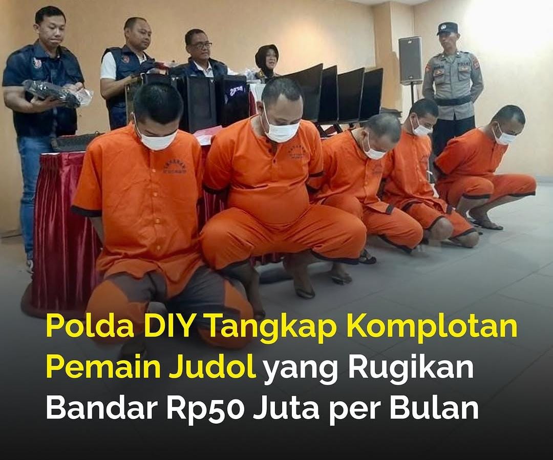 “Mereka sudah beroperasi kurang lebih 1 tahun. Para tersangka bermain judi online secara terorganisir dengan memanfaatkan promo situs judi, menggunakan beberapa akun dan perangkat komputer,” ungkap AKBP Slamet Riyanto, Kasubdit V Cyber Ditreskrimsus Polda DIY. Kelimanya dijerat dengan Undang-Undang ITE dan Pasal 303 KUHP tentang perjudian, dengan ancaman hukuman 10 tahun penjara dan denda hingga Rp 10 miliar.