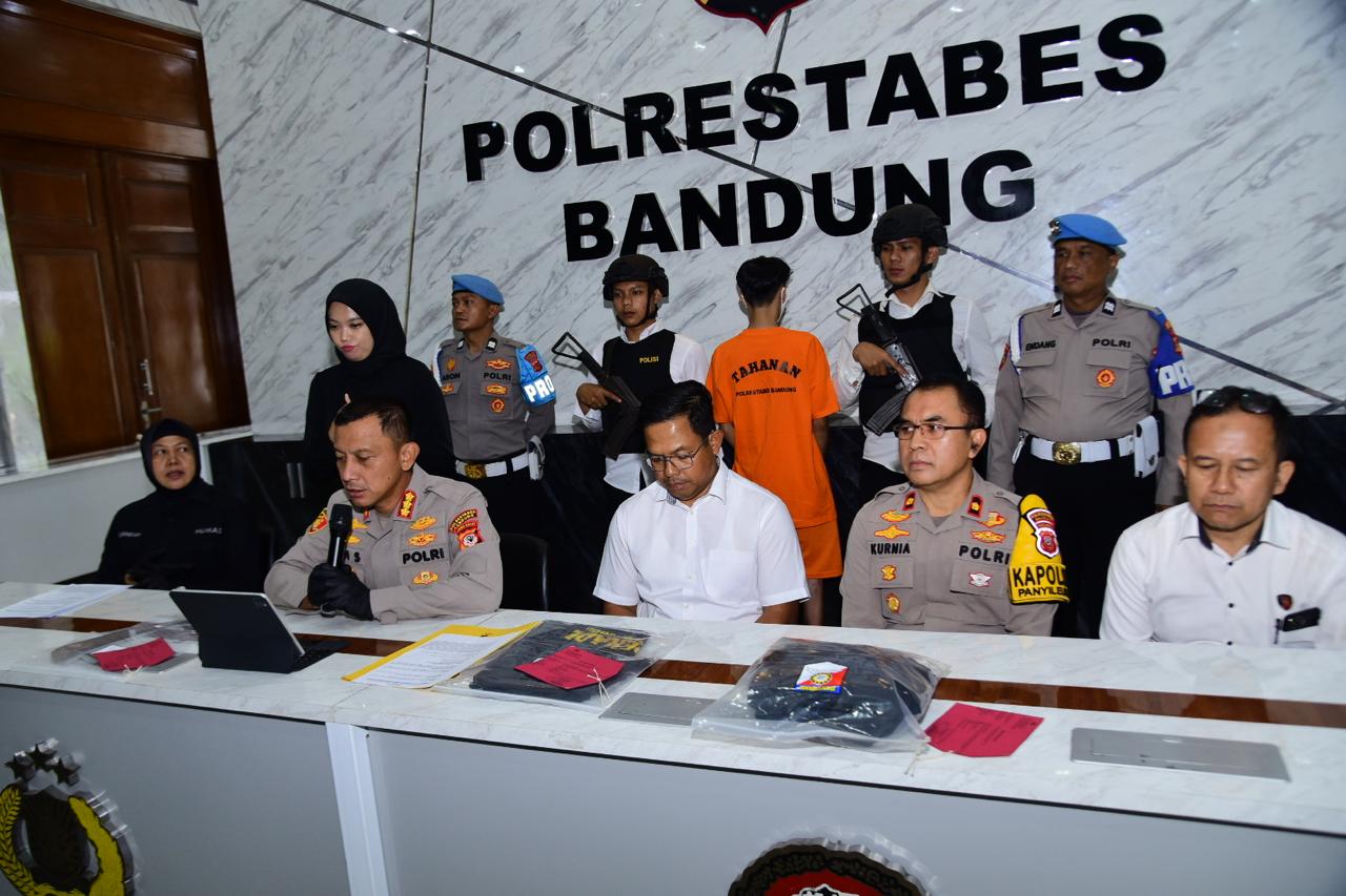 Polrestabes Bandung melalui Kapolrestabes Bandung, Kombes Pol. Dr. Budi Sartono, S.I.K., M.Si., M.Han., didampingi Kasat Reskrim Polrestabes Bandung dan Kapolsek Panyileukan, menggelar press release terkait pengungkapan kasus yang menyebabkan hilangnya nyawa seorang pelajar SMK di wilayah Cibiru, Kota Bandung, Jumat malam, 1 Agustus 2025.