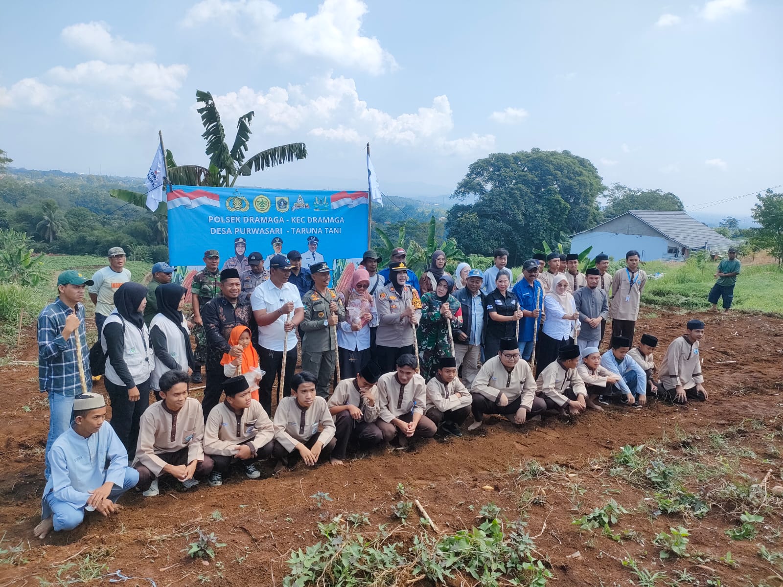 Kapolsek Dramaga Bersama Forkompimcam Kecamatan Dramaga Giat Penanaman Jagung Hybrida Diponpes Zahid Bin Tshabit wilayah Desa Purwasari, Ajak Jaga Kondusifitas Cegah Gangguan Kamtibmas