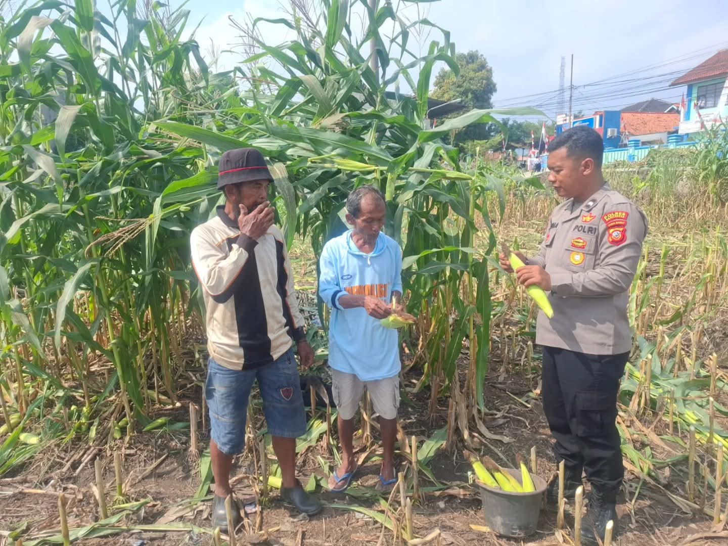 Majalengka, Dalam upaya mendukung program ketahanan pangan nasional, Kanit Binmas Polsek Rajagaluh Polres Majalengka AIPDA Dirgaha Maludi bersama Bhabinkamtibmas Briptu Adhitia melaksanakan sambang ke para petani jagung di wilayah binaannya.