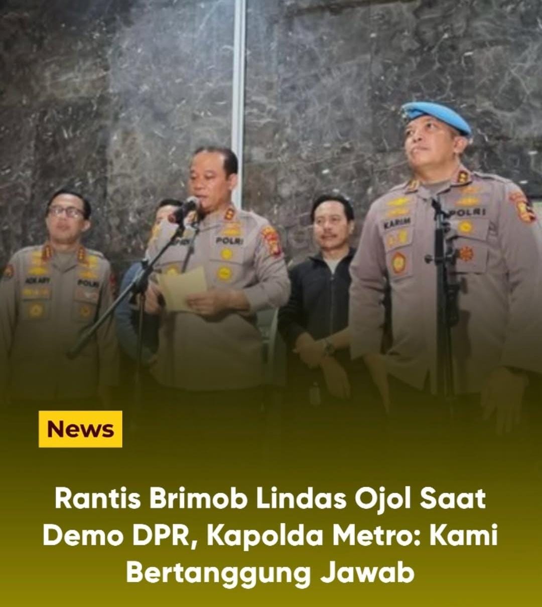 Rantis Brimob Lindas Ojol Saat Demo DPR, Kapolda Metro: Kami Bertanggung Jawab.