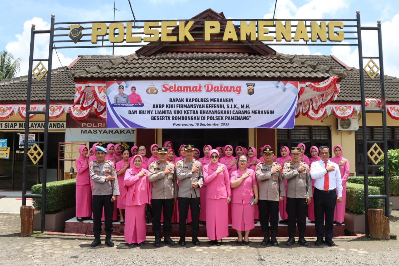 Merangin – Kapolres Merangin, AKBP Kiki Firmansyah Effendi, S.I.K., M.H., bersama Ketua Bhayangkari Cabang Merangin Ny. Lianita Kiki beserta para pejabat utama (PJU) Polres Merangin, melaksanakan kunjungan kerja ke Polsek Bangko dan Polsek Pamenang, Senin (16/9/2025).