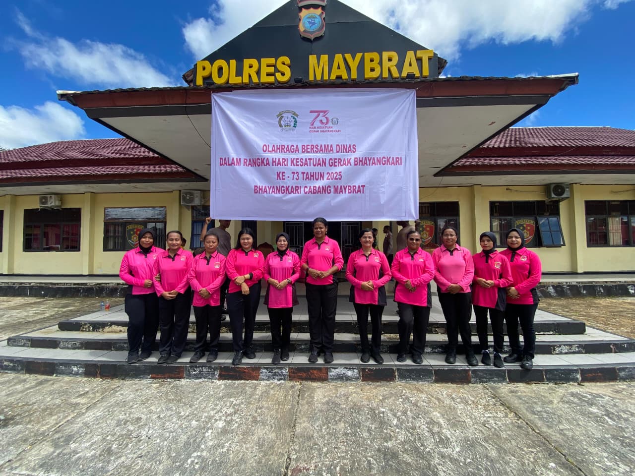 MAYBRAT PBD, BUSERJATIM.COM GROUP (03/10/25) – Dalam rangka memperingati Hari Kesatuan Gerak Bhayangkari (HKGB) ke-73, Bhayangkari Cabang Maybrat bersama Polres Maybrat melaksanakan kegiatan olahraga bersama yang berlangsung di Alun-alun Vaitmayaf, Kabupaten Maybrat, Jumat (03/10/2025).