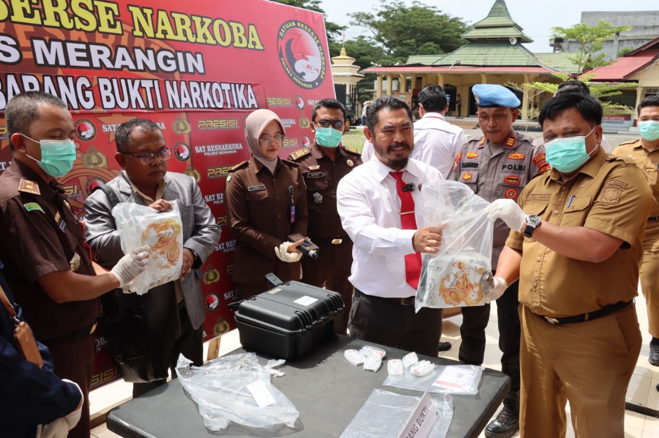 Dalam kegiatan pemusnahan barang bukti narkotika tersebut turut dihadiri oleh Bupati Merangin yang diwakili oleh Sekda Merangin, Kajari Merangin yang diwakili oleh Kasi Pidum Kajari Merangin dan Kasi BB Kajari Merangin, Ketua Pengadilan Negeri Bangko, Kalapas Kls II B Bangko, Kadis Kesehatan Merangin, Kadis Koperindag Merangin, Kepala BPOM Muara Bungo, Penasehat Hukum Tersangka dan seluruh PJU Polres Merangin.
