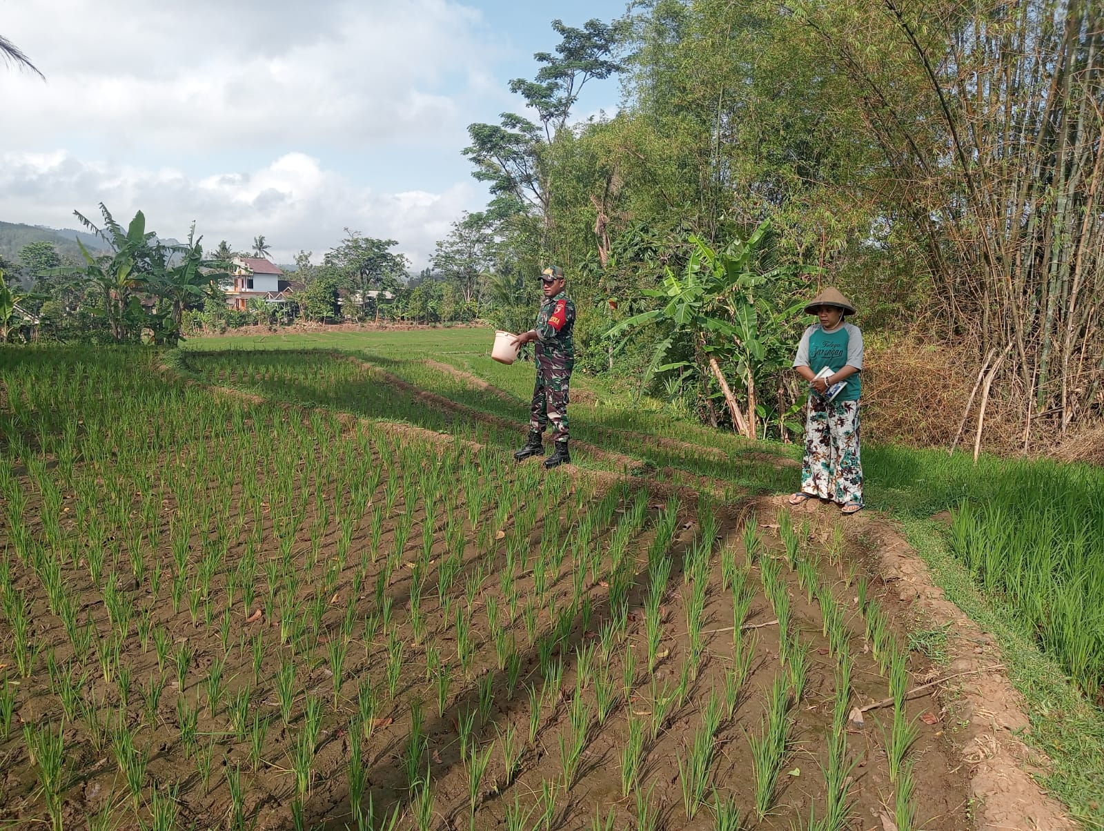 Aktif Lakukan Pendampingan, Babinsa Kodim Ponorogo Bantu Petani Pupuk Tanaman Padi