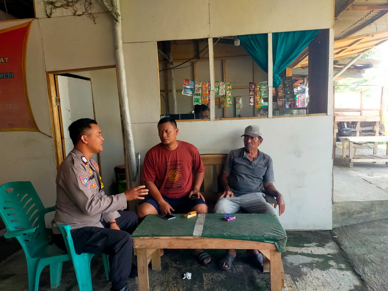INDRAMAYU – Bhabinkamtibmas Polsek Patrol Polres Indramayu Polda Jabar Bripka Sarudin, tanpa sekat duduk bersama warga di sebuah warung kopi sederhana di desa binaannya. Senin (6/4/2026).