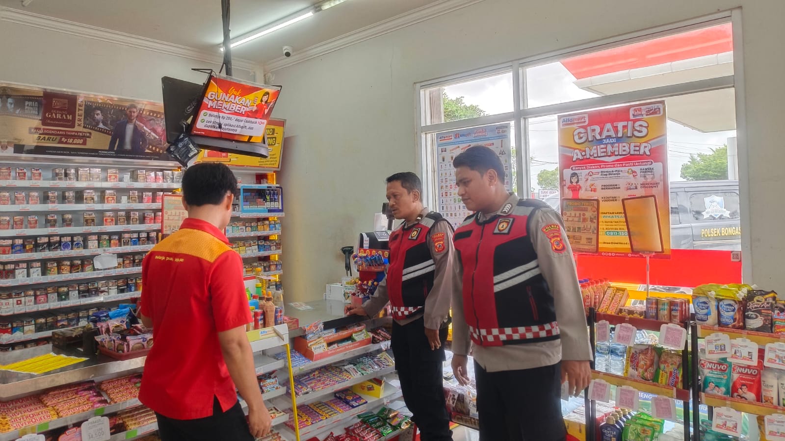 Siang ini sejumlah personel kepolisian nampak terlihat di pusat aktivitas warga, termasuk minimarket Alfamart yang ada di wilayah hukum Polsek Bongas.