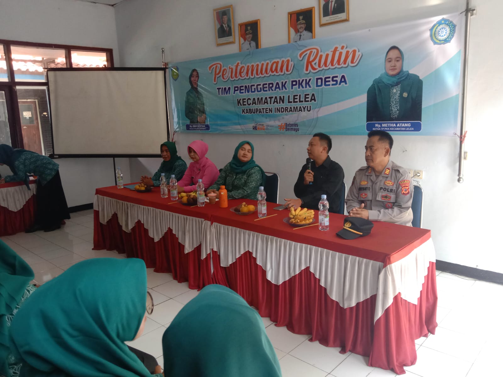 Para anggota PKK yang mengenakan seragam hijau khasnya tampak antusias menyimak arahan yang diberikan.