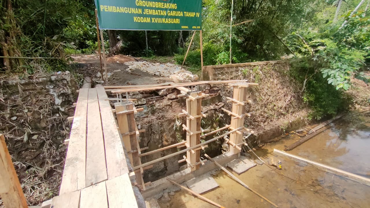 Pasiter Kodim 1802/Sorong Kapten Inf Suyatno menyampaikan bahwa hingga saat ini progres pembangunan jembatan telah mencapai sekitar 18 persen. Jembatan dengan panjang 15 meter dan konstruksi beton tersebut dikerjakan secara bertahap dengan tetap mengutamakan kualitas serta ketahanan bangunan agar dapat digunakan dalam jangka panjang.