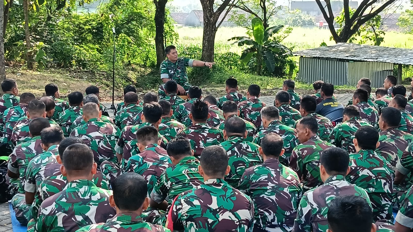 NGAWI, BUSERJATIM.COM GROUP – Komandan Kodim 0805/Ngawi, Letkol Arh Setu Wibowo, S.Hub.Int., M.H.I., memberikan pengarahan jam komandan kepada seluruh anggota TNI dan PNS Kodim 0805/Ngawi yang diikuti sekitar 300 personel. Bertempat di halaman kebun Kodim Ngawi di Desa Ngawi Purba, Kec. Ngawi, Kab. Ngawi. Senin (20/4/2026).