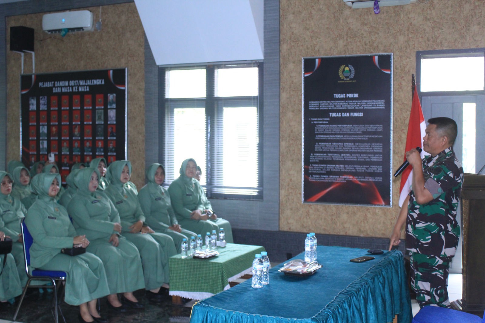 Hadir sebagai narasumber utama, Wakabintal Kodam III/SLW, Letkol Inf Dudu Badrusalam. Turut mendampingi Kasdim 0617/Majalengka Mayor Inf Sugiyanto, para perwira staf, para Danramil jajaran, serta Ketua Persit KCK Cabang XXVIII, Ny. Adhita Fahmi Guruh Rahayu beserta perwakilan anggota.