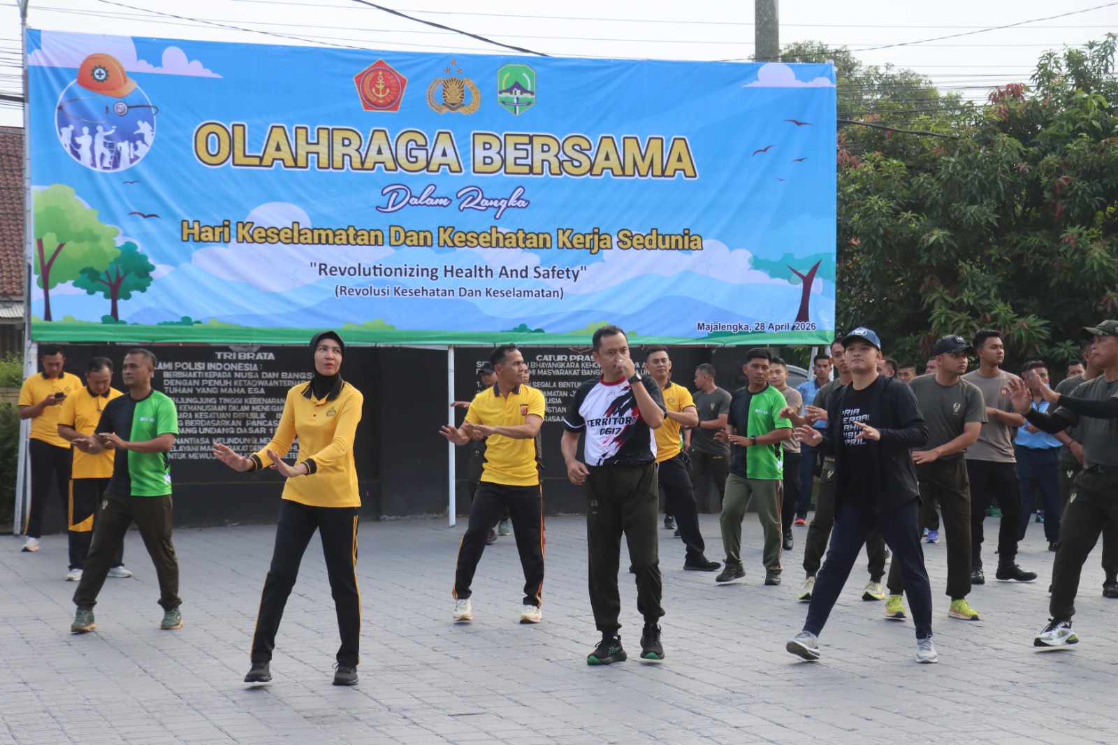 Majalengka – Dalam rangka memperingati Hari Keselamatan & Kesehatan Kerja (K3) Sedunia yang jatuh pada tanggal 28 April 2026, para aparat TNI-Polri serta jajaran pemerintah Kabupaten Majalengka menggelar olahraga bersama di Lapangan Apel Polres Majalengka, Jalan KH Abdul Halim No. 518, Kelurahan Cigasong, Kecamatan Cigasong, Kabupaten Majalengka, Selasa (28/4/2026).