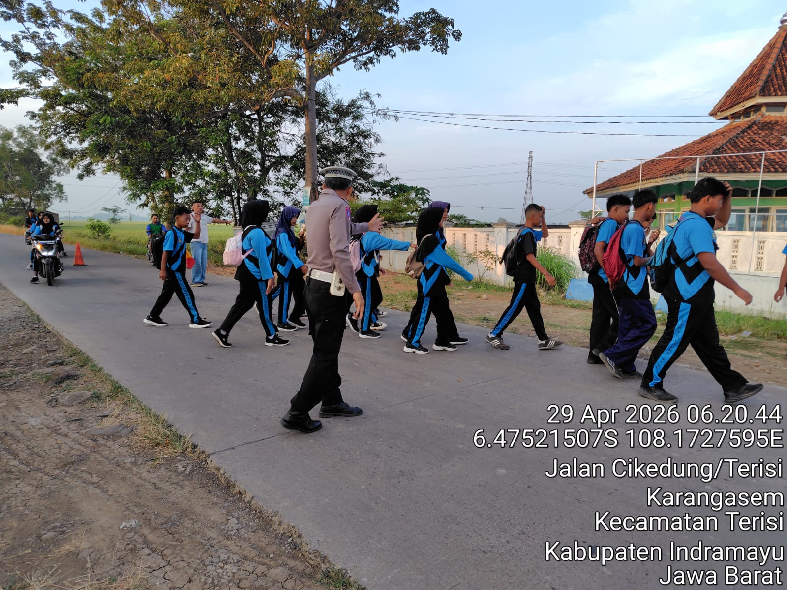 INDRAMAYU – Dalam upaya menciptakan situasi Keamanan, Keselamatan, Ketertiban, dan Kelancaran Lalu Lintas (Kamseltibcar Lantas), personel Polsek Terisi Polres Indramayu Polda Jabar kembali melaksanakan kegiatan pengaturan lalu lintas (Gatur Lantas) pagi hari di kawasan sekolah, Rabu (29/4/2026).